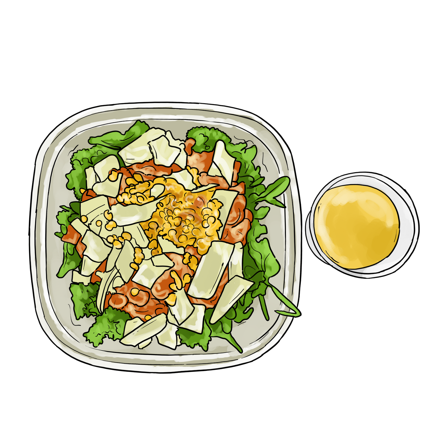Savor the freshness of our Chicken Arugula Salad, featuring succulent never-frozen freshly grilled chicken atop a bed of vibrant arugula and kale, garnished with juicy tomatoes, savory Parmesan cheese, and crunchy walnuts. Drizzled with our house-made Pineapple Vinaigrette or Balsamic Vinaigrette, it's a harmonious blend of flavors and textures that will leave you feeling satisfied and refreshed.